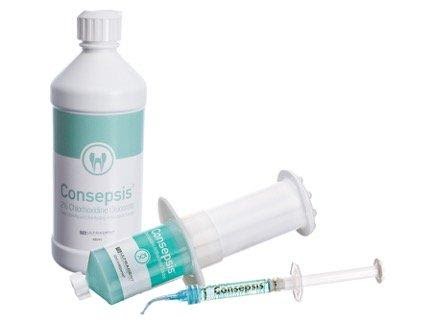 Sử dụng dung dịch Consepsis trước quy trình dán hoặc để khử khuẩn bề mặt ống tủy trong những trường hợp dùng NaOCl sẽ gây hại, như trường hợp có tiêu chân răng.